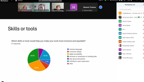 Re-Direction პროექტის ფარგლებში, 2025 წლის 14 მაისს ჩატარდა გამამდიდრებელი სამუშაო შეხვედრა ინკლუზიურობის თემაზე. ეს ღონისძიება წარმოადგენს პროცესის ნაწილს, რომელიც მიზნად ისახავს ინკლუზიურობის სახელმძღვანელოს შემუშავებას აკადემიური და ადმინისტრაციული პერსონალისთვის. ინკლუზიურობის საკითხების ექსპერტის, ქალბატონი ლილა საქს დოს სანტოს გომესის მხარდაჭერით, პროექტის გუნდმა განიხილა მრავალფეროვნების ის ასპექტები, რომლებიც ყველაზე აქტუალურია საქართველოსა და უკრაინის პარტნიორი ინსტიტუტებისთვის.